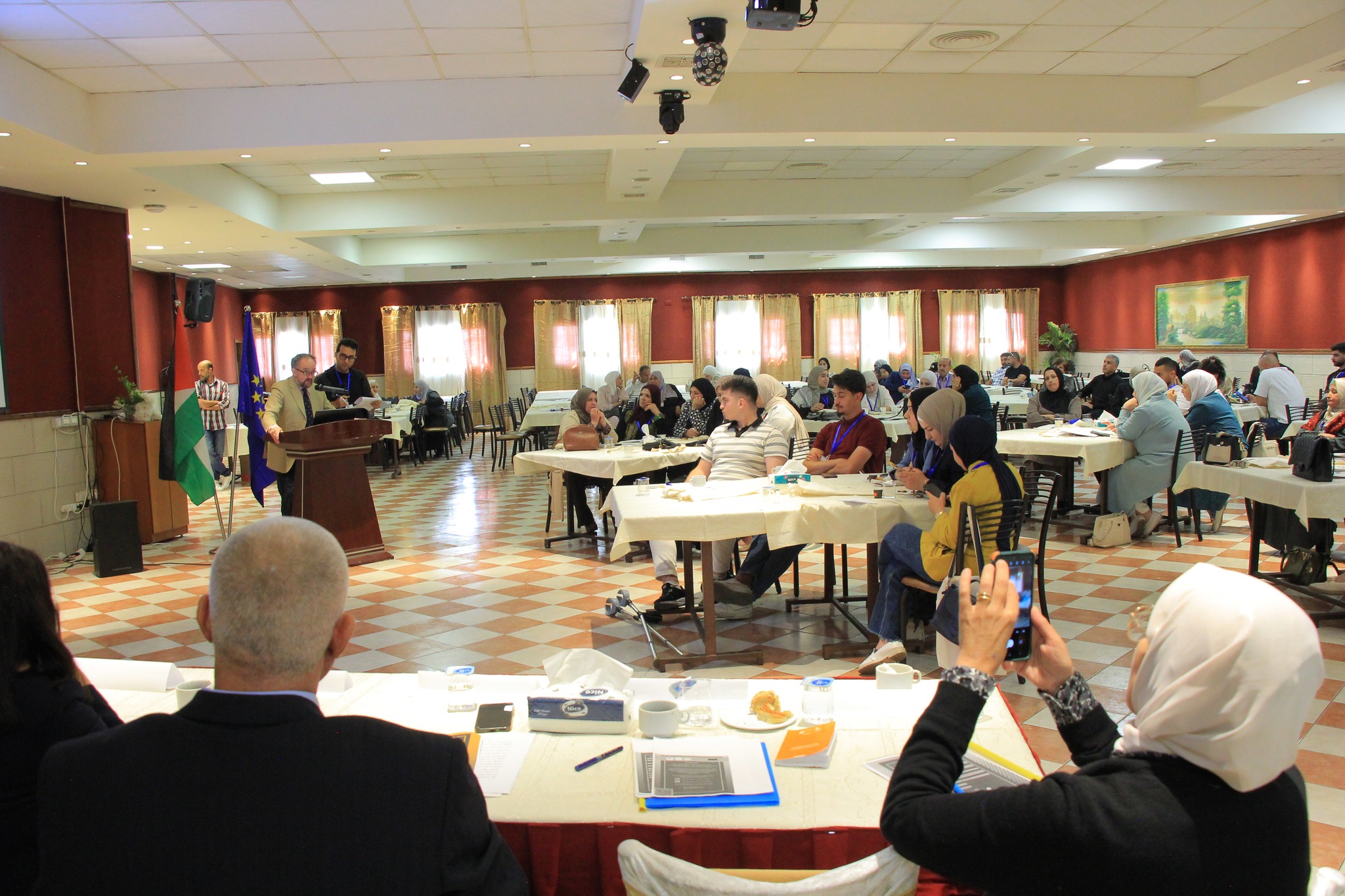 During the ceremony, Mrs. Khawla Al-Azraq, General Director of PSCCW, expressed her pride in participating in this unique project, which reflected a distinguished model of professional partnership and institutional integration. She affirmed that the tangible results achieved represent a significant step towards realizing social and humanitarian justice in Palestine. She also called on the European Union to take responsibility in stopping the genocide against the Palestinian people and halting the annexation plans in the West Bank.