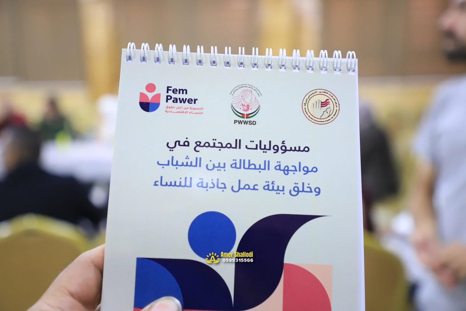 Participants included representatives from the Ministry of Labor, Hebron Governorate, Chamber of Commerce, General Federation of Trade Unions of Palestine, in addition to women organizations, civil society, and academic organizations, as well as young entrepreneurs. They shared their experiences and challenges in confronting unemployment and proposed creative solutions that bridge education with the labor market, while promoting a culture of entrepreneurship and self-employment.